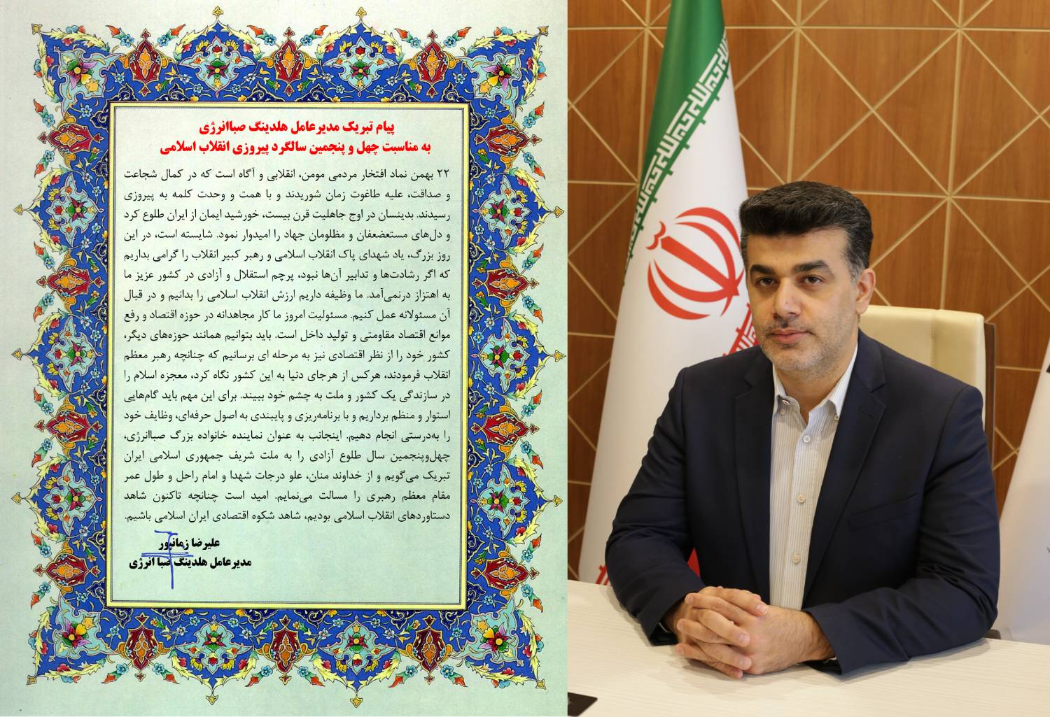 پیام تبریک مدیرعامل هلدینگ صباانرژی به مناسبت چهلوپنجمین سالگرد پیروزی انقلاب اسلامی