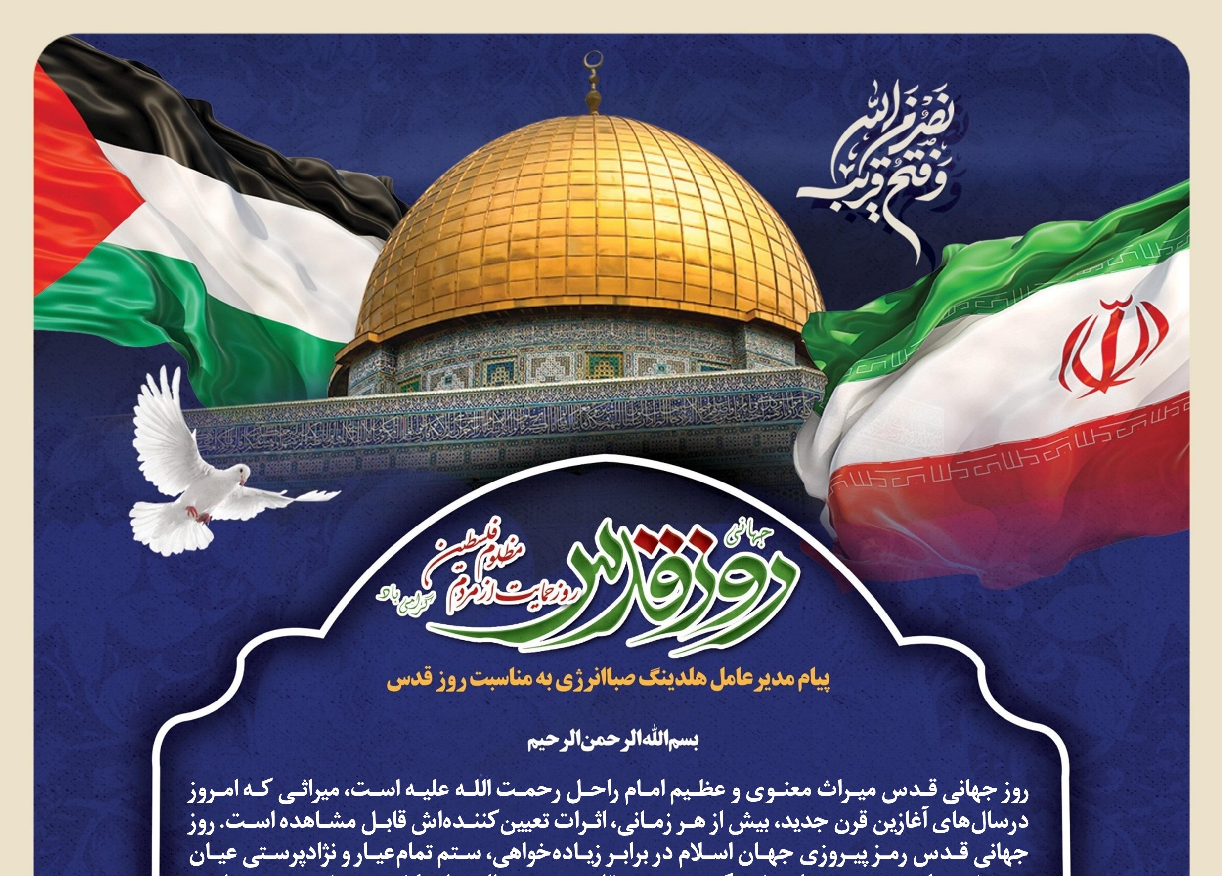 • پیام مدیرعامل هلدینگ صباانرژی به مناسبت روز جهانی قدس