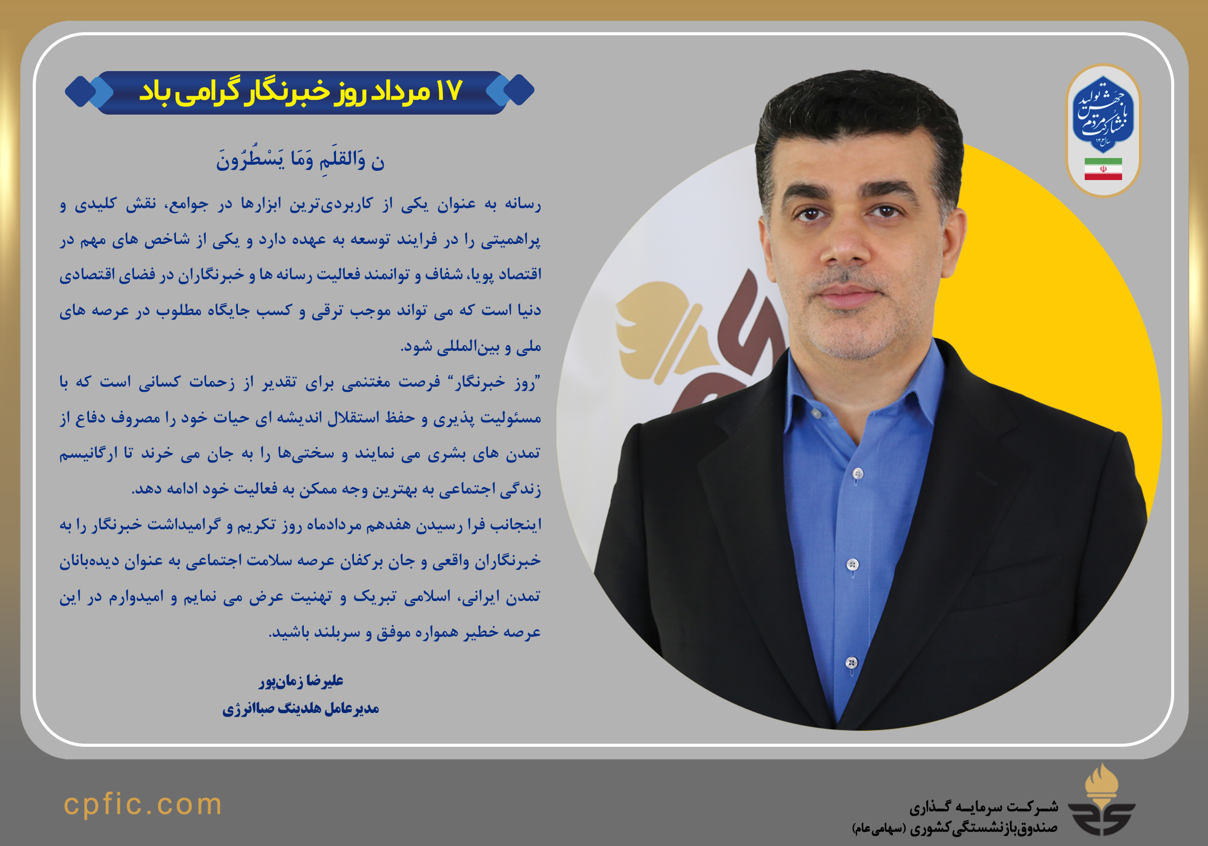 “روز خبرنگار” فرصت مغتنمی برای تقدیر از زحمات کسانی است که با مسئولیت پذیری و حفظ استقلال اندیشه ای حیات خود را مصروف دفاع از تمدن های بشری می نمایند و سختیها را به جان می خرند تا ارگانیسم زندگی اجتماعی به بهترین وجه ممکن به فعالیت خود ادامه دهد.